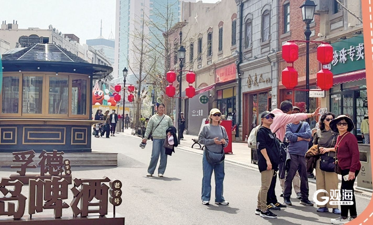 中山路上的老字号门店前,新加坡游客仔细听导游讲起青岛“五朵金花”的制造业历史;水龙池子广场附近,两名德国游客饶有兴致地走进里院探访;一家家奶茶店、馄饨店、火锅店里,外国游客看着中英韩三国语言的菜单轻松下单,店铺的外语广播循环播放,汇入熙攘的街道……这些稍纵即逝的瞬间,记录着外国游客在青岛“不见外”的日常。